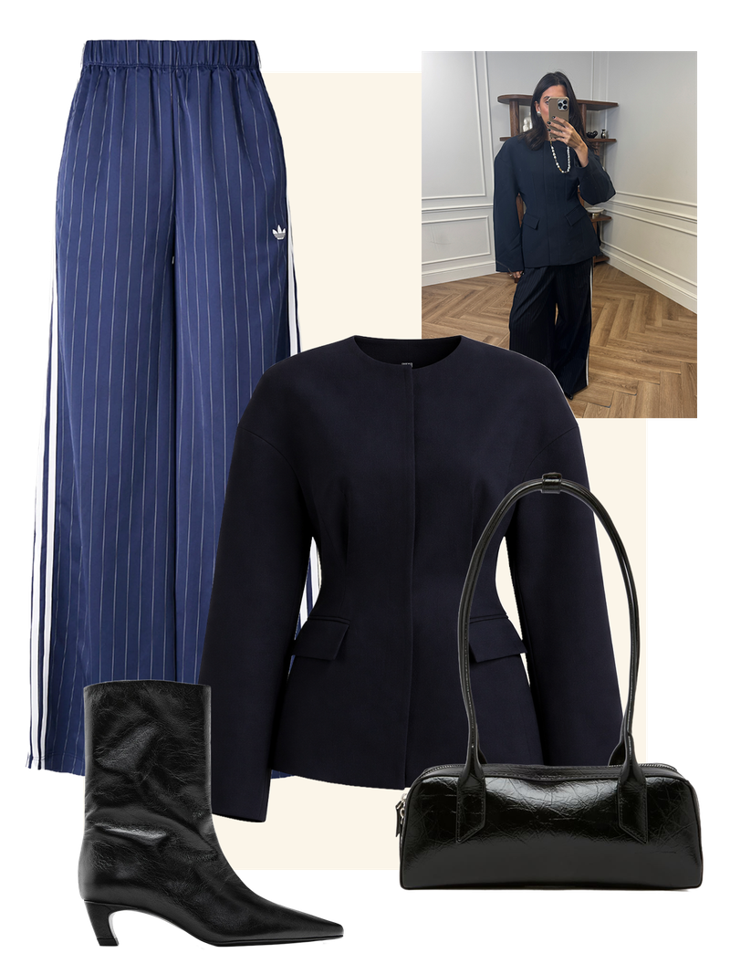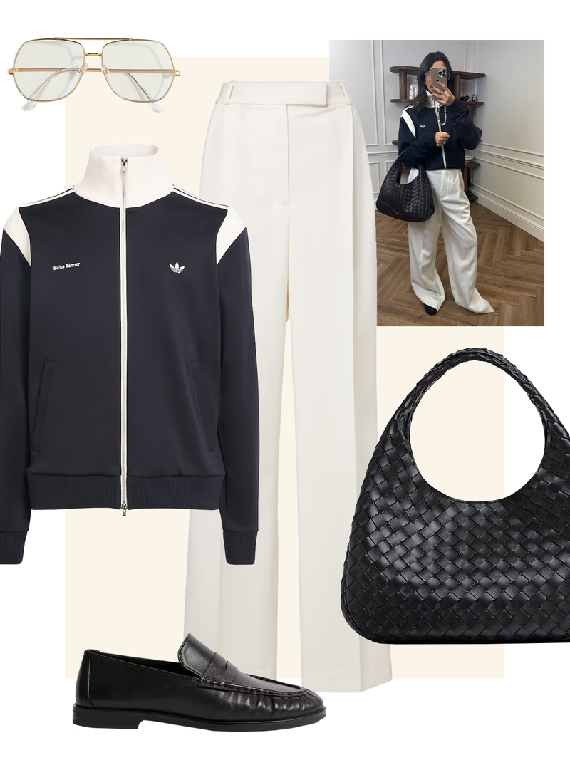 From funnel-neck tech jackets to classic adidas stripe track pants, sports-luxe is all about where off-duty essentials meet polished tailoring. For this week’s Friday Fashion Fix, Sapna shares three chic, modern ways to nail the look.