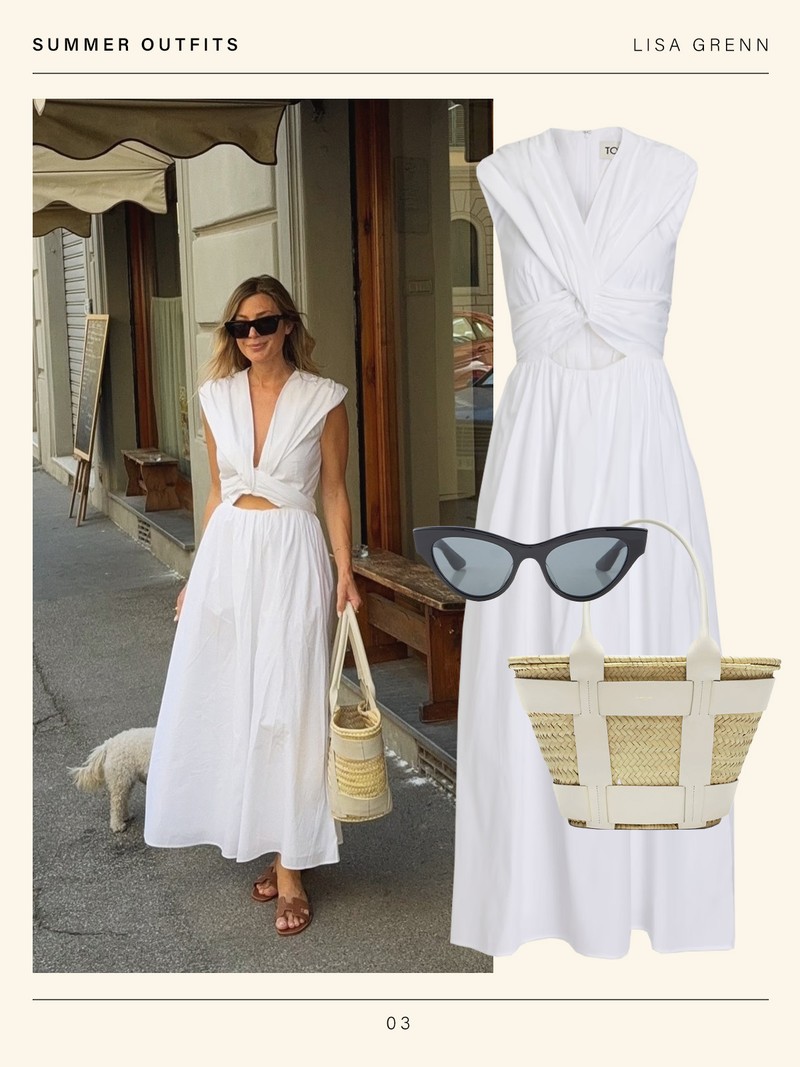 A white cotton dress always works in the summer. I found this Tove one on sale and love how it works so effortlessly for the day but still feels elevated enough to wear into the evening.