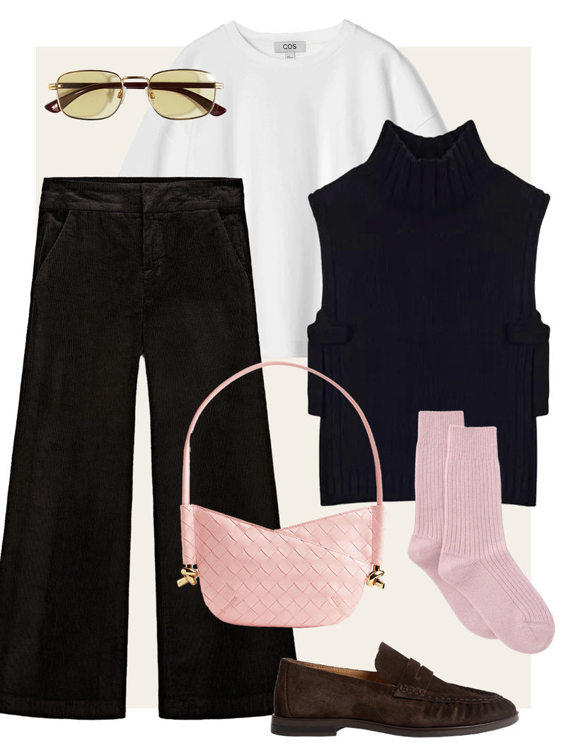 Brown and baby pink is a colour pairing we can’t stop thinking about – soft yet striking, it puts a feminine spin on an autumnal look. For a more subtle nod, try pairing brown tailored trousers with a soft pink bag or ribbed sock.