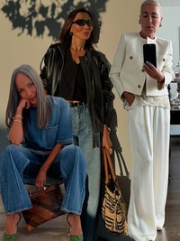 Satin trousers are my go-to for an effortless date-night look. I’ll be keeping my base simple with a beige palette. I’ll inject some interest through texture with this knitted t-shirt and a cropped wool bomber jacket. As it’s date night, I’ll elevate the look with a rich burgundy clutch bag and some pointed heels. A fun and unique earring is part of my signature style and this baby twist pair from Misho are just right for an evening occasion.