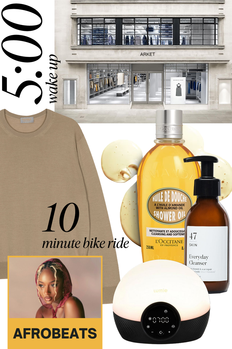 My morning playlist gives me energy. I take my Wonderboom speaker into the shower with me and listen to everything from 60s upbeat to Afrobeats. I always use my Estrid razor with the L’Occitane Almond shower oil and my skincare routine is very simple. I only use the 47 Skin Everyday cleanser and its Anti-Blemish & Scar Repair serum