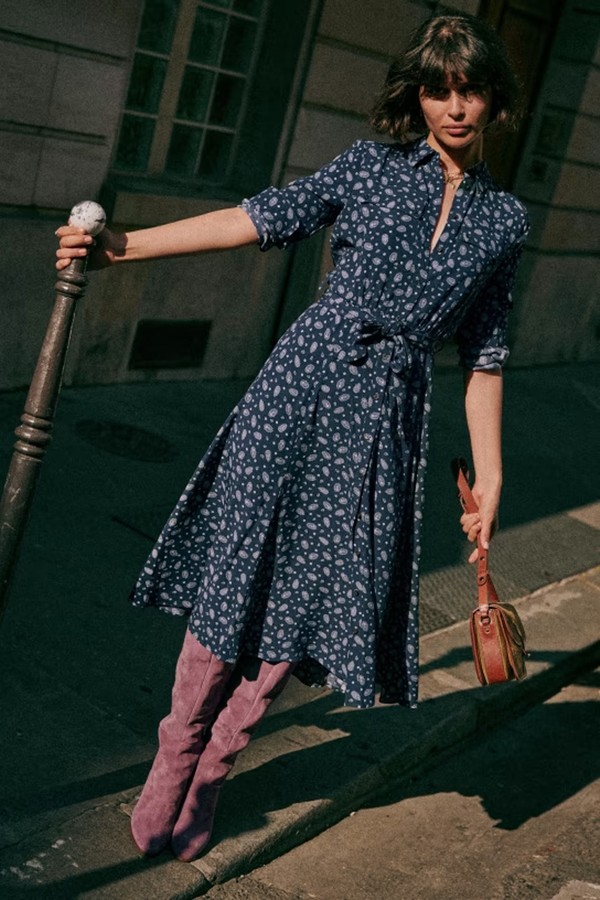 A pretty long-sleeved midi dress will nod to the change in seasons. Just wear with simple flats now and swap for boots once the temperature cools.