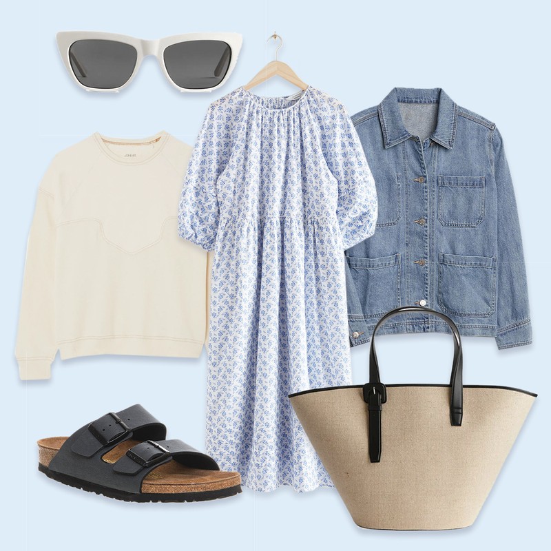 Put a cool, everyday spin on the look by adding classic Birkenstocks and easy, throw-on layers. A great Staycation edit, a canvas bag completes it.