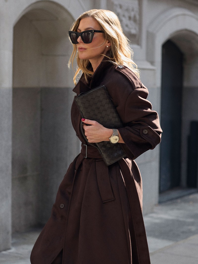The second look was all about ease and versatility. I styled a chocolate-toned trench coat with pointed Khaite heels – such a simple pairing but incredibly refined. It’s the kind of outfit that works hard in your wardrobe without shouting. The watch was the final detail that brought it all together, adding a touch of polish that made the look feel considered and complete.