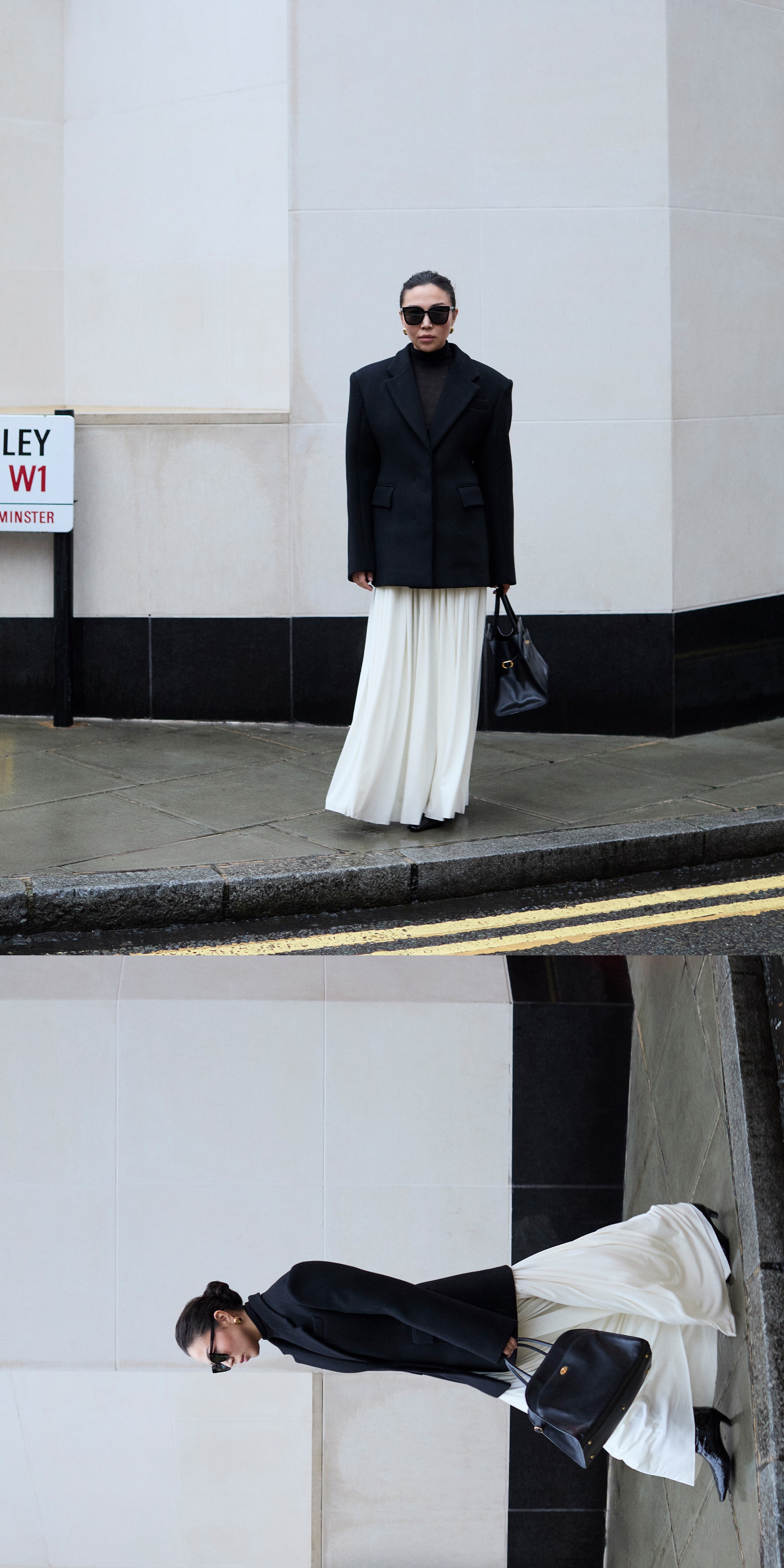 There’s a lot of talk in the industry about the return of statement fashion. But it doesn’t fluster me. Just because I enjoyed a few seasons of quiet luxury and minimalism doesn’t mean I’m going to turn my back on either of them because the tide is turning. Those aesthetics reflect my personal style, and I don’t think ‘timelessness’ will ever go away. This is who I am.