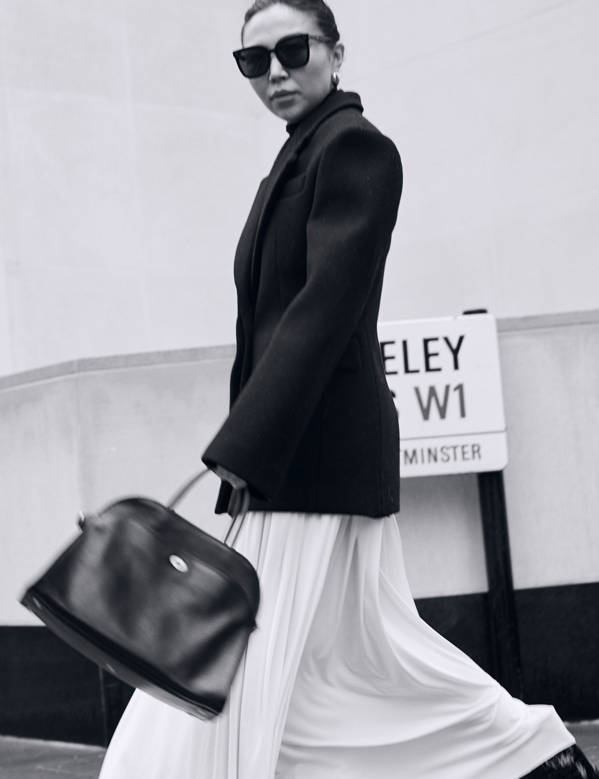 I’m very into the idea of a capsule working wardrobe. Last year, on my Instagram, I challenged myself to style a week’s worth of outfits using just ten pieces. It was supposed to show people that if you have a good base, you can create so many looks. The trend cycle is also fast and intense these days, it’s hard to know which way is up. That’s why I loved quiet luxury so much. It felt like that movement totally aligned with my personal style. For me, it wasn’t a trend – it’s still the main principle I follow.