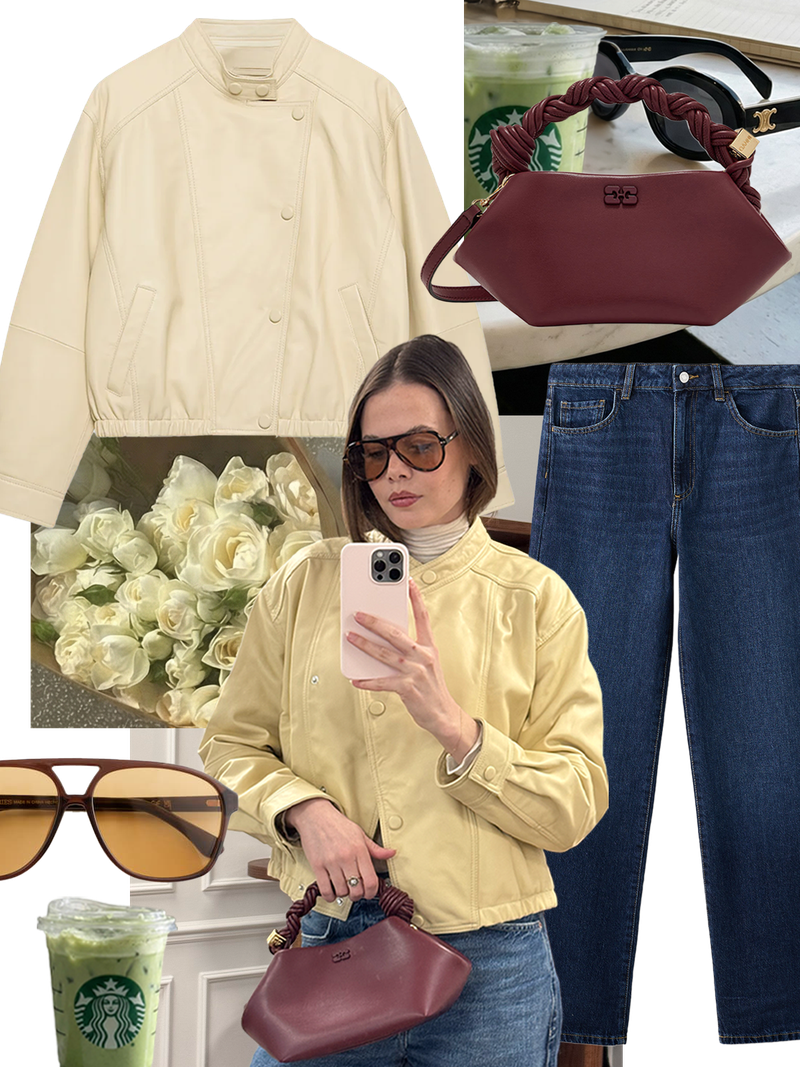 Wednesday was a full-on day of shoots and filming for SheerLuxe, so the popular Iced Matcha Latte was needed in-between takes. I needed an outfit that felt both polished and wearable, and introduced a hit of spring colour with this buttery yellow bomber from Mint Velvet, styled with a new Ganni clutch.
