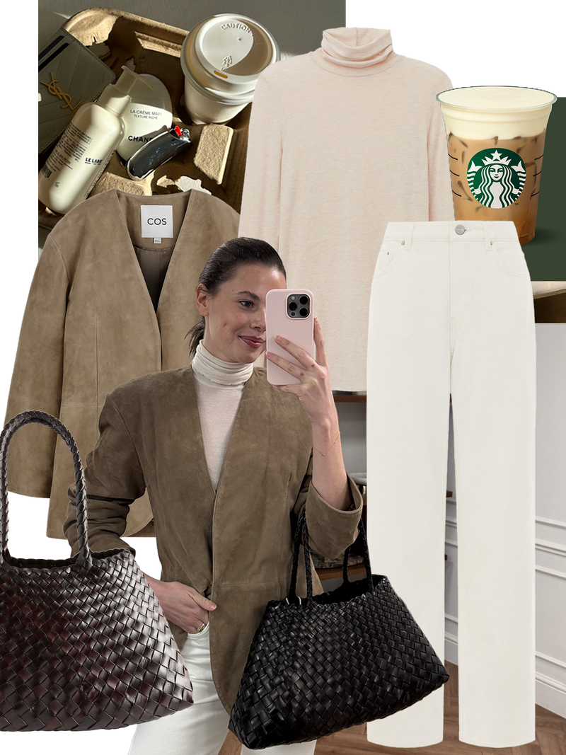 Tuesday was slightly quieter than usual, so I opted for a pared-back look that still felt chic – this suede tan jacket from Massimo Dutti did all the hard work for me. An Iced Brown Sugar Oat Shaken Espresso was exactly what I needed for a morning spent collating product edits and pulling together the season’s key trends for an on-site piece.