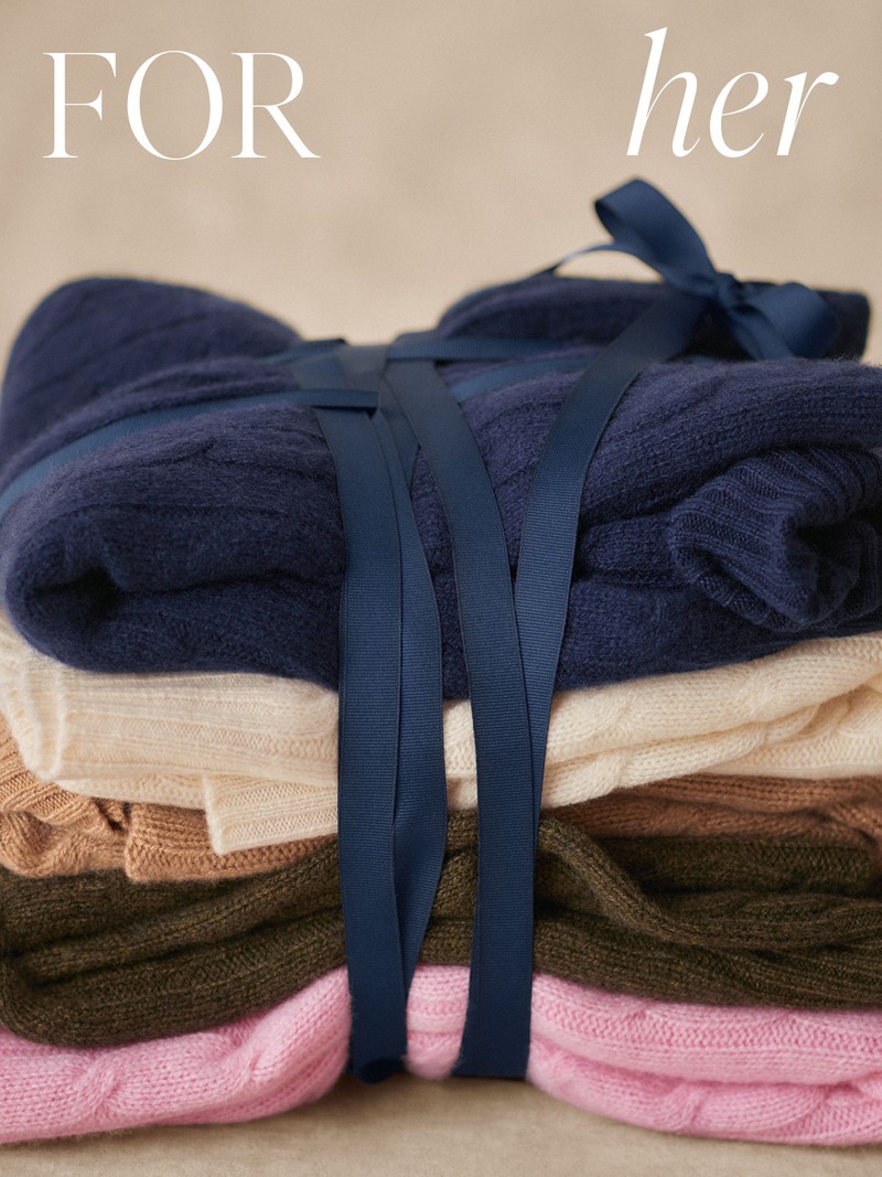 You can’t go wrong with THE CLASSICS. FROM CASHMERE KNITS TO CABLE KNIT SCARVES AND STRIPED PYJAMAS, these are pieces she’ll come back to year after year.