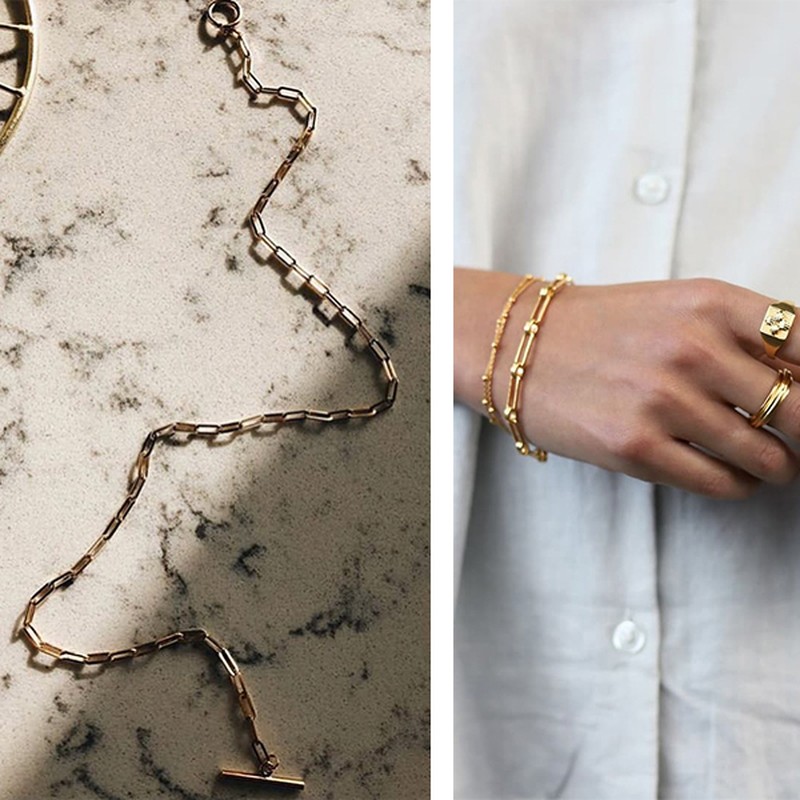 Stylish and feminine, slim gold chain bracelets are more on trend than ever. A few worn at once is pretty, or pair with a chunkier bangle for everyday cool. However you choose to wear the look, here are some of our favourites…