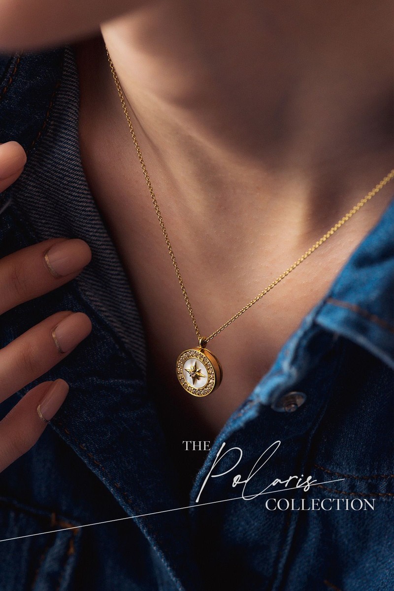 Inspired by the Pole Star - this sparkling constellation piece is given extra LUMINOSITY by the sapphire-set star and mother of pearl surrounds. Add a picture or engraved initials for PERSONAL TOUCH.