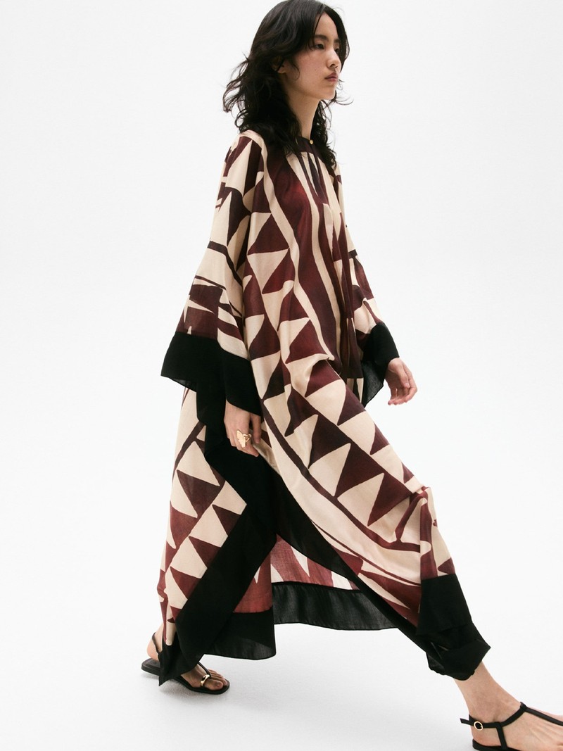 Proof that great style doesn’t have to cost the earth, this oversized H&M kaftan blends bold geometry with a chic neutral palette.
