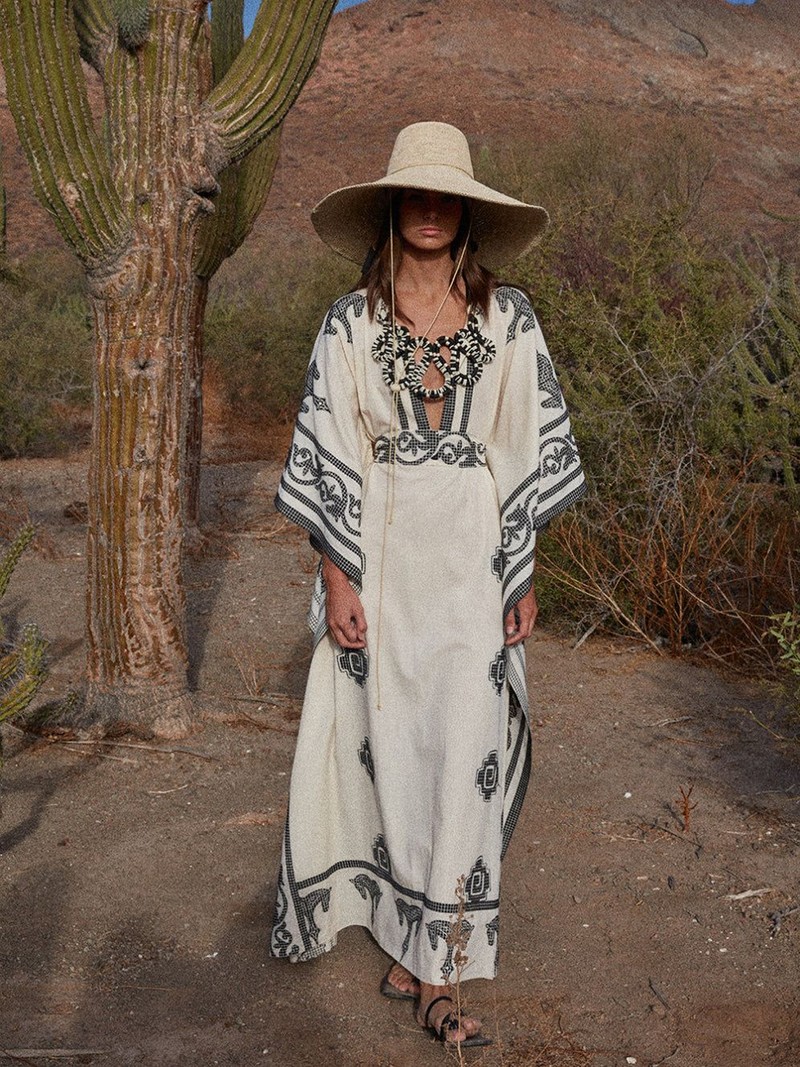 The feminine collections of Colombian designer Johanna Ortiz usually include a great investment kaftan. Crafted from soft embroidered cotton, this Boating Tunic dress is a must-have.