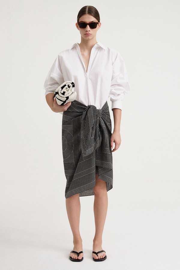 THE ZURI SARONG from Second Summer is the ultimate beach-to-bar piece – wear it long for a breezy, elegant look, or fold it SHORT FOR A MORE RELAXED VIBE.