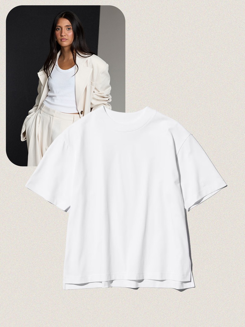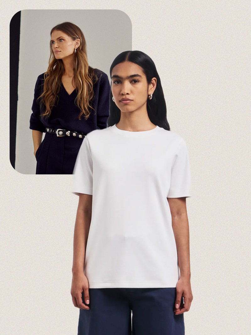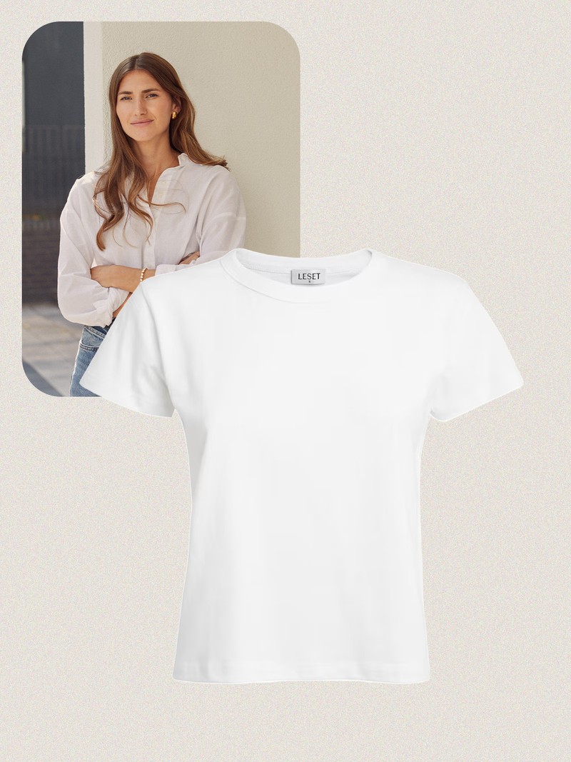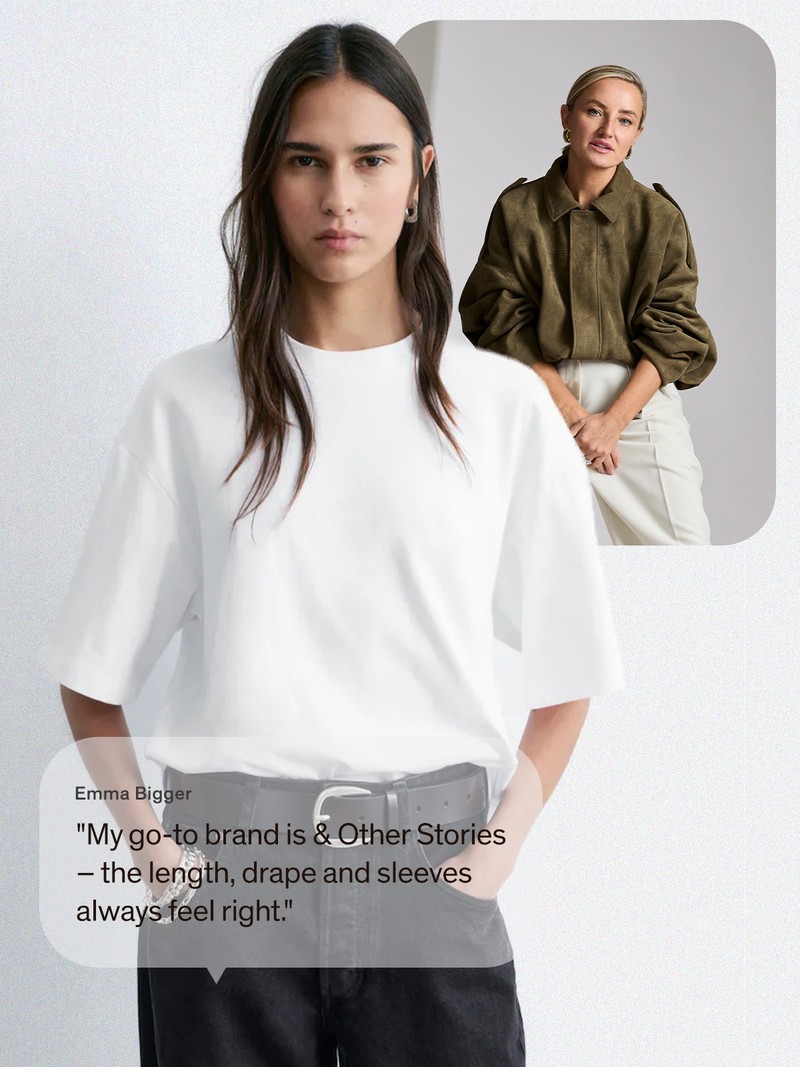 My white t-shirt checklist never changes: a boxy fit, a thick ribbed neckline and high-quality cotton that stays fresh wash after wash. My go-to brand is & Other Stories – the length, drape and sleeves always feel right. I tend to buy three each season so I always have a fresh one ready to style under jackets, blazers and crew-neck knits.