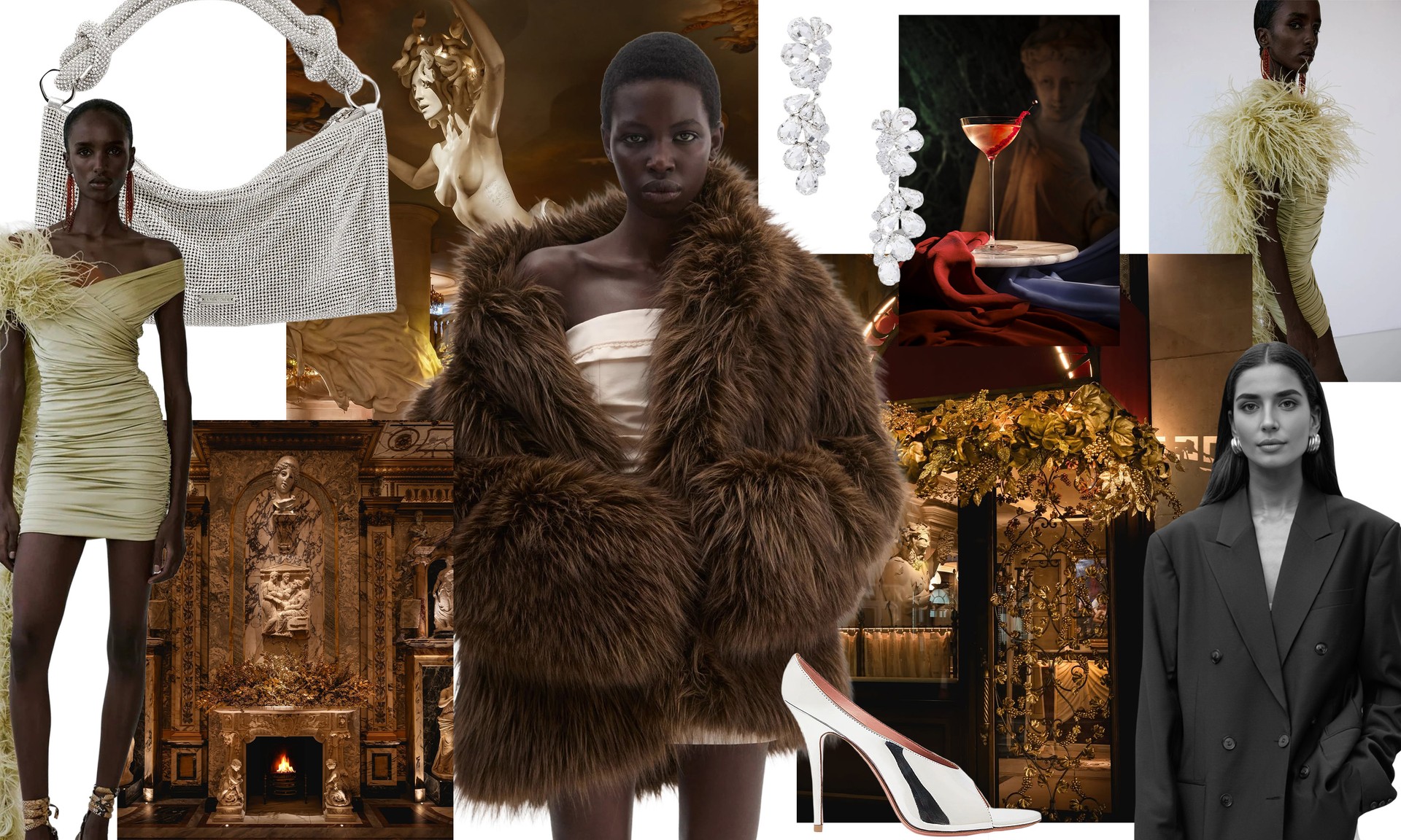 For me, date-night dressing is all about contrast – a soft, tactile faux-fur jacket paired with a clean silhouette. It feels elevated without being overdone, while statement crystal earrings add just the right amount of sparkle. Finished off with heels, it’s perfect for a low-lit dinner that turns into a late night.