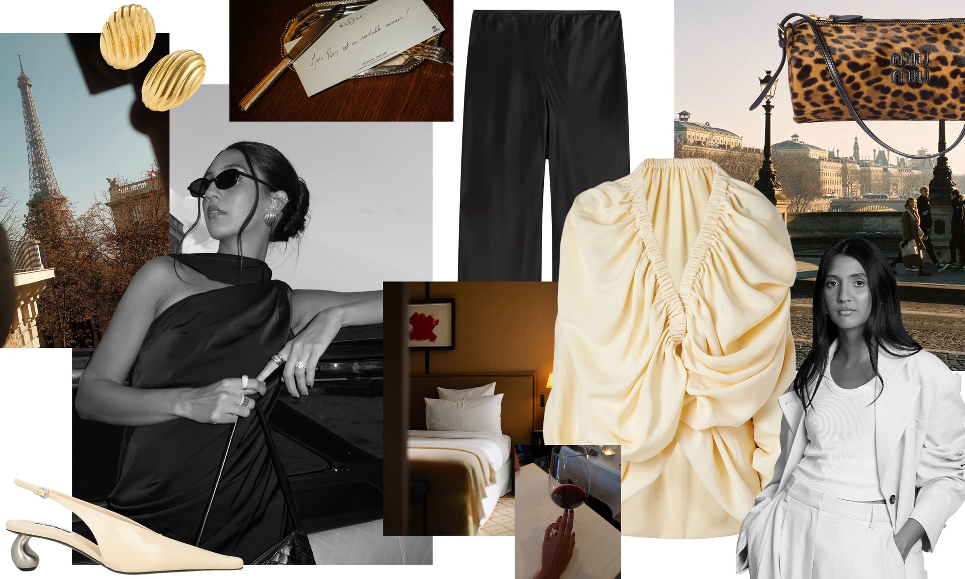 The evening staple I've struggled to nail is definitely a good going out top – but this one might be made for me. It’s sexy and cool but not tight or uncomfortable. Styling is so easy with a piece like this and it blends perfectly with the vibe of my ideal date-night venue – Hôtel Balzac Paris. Finally, I always like to dress things up with a fun bag and shoes – plus, my go-to earrings.