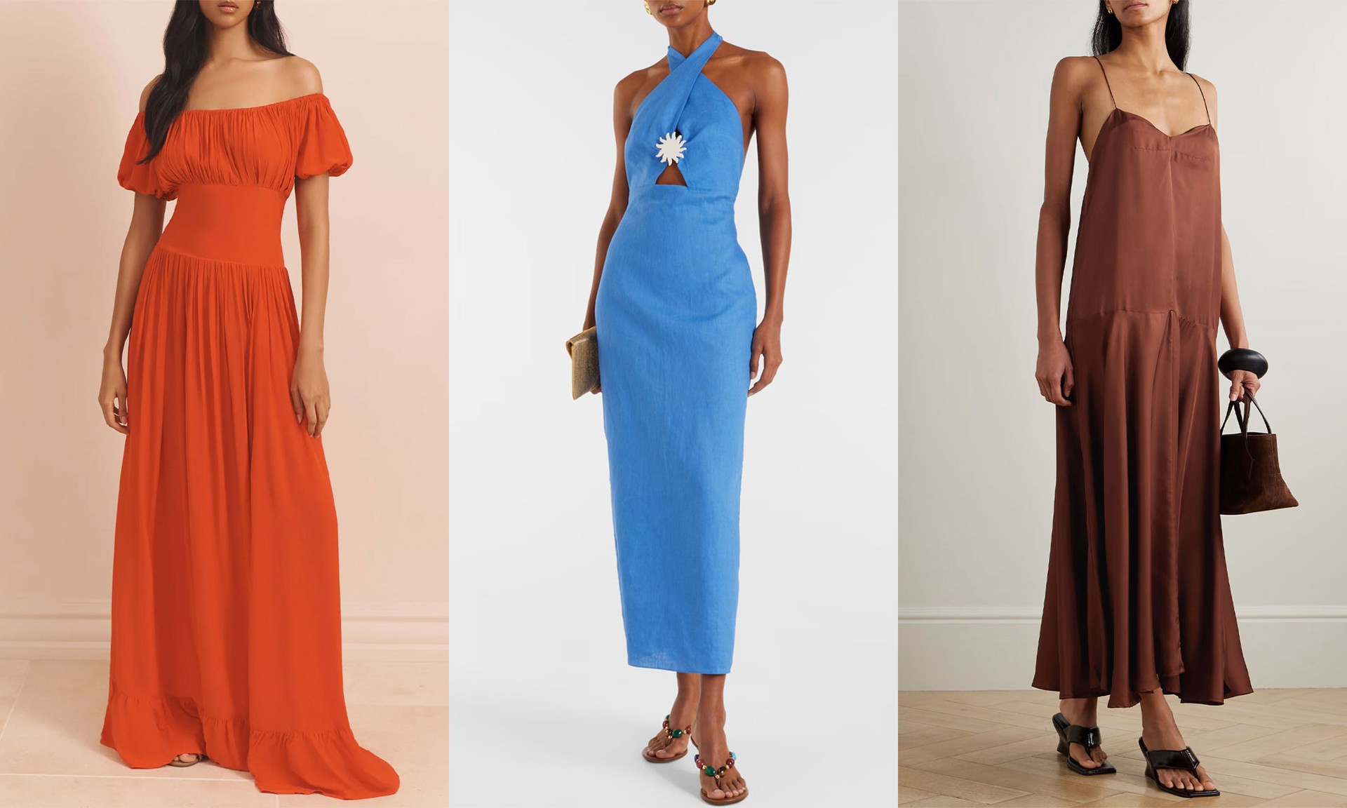 Evenings on a winter-sun break call for something a little special. I favour unfussy but impactful silhouettes: slinky slips, elegant halters or softly draped styles that move beautifully in warm air. Lightweight fabrics such as silk, satin or viscose keep things cool while refined. Colour is also key – sunset shades like burnt orange, red and deep pink look incredible against tanned skin. Subtle details such as a low back, twisted neckline or delicate embellishment add interest without ever feeling overdone.