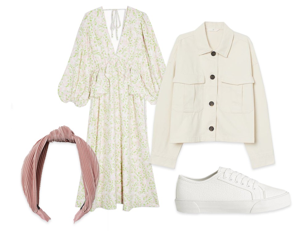 Make Topshop’s floral full-sleeve dress work for daytime by adding slick sneakers and a boxy jacket.