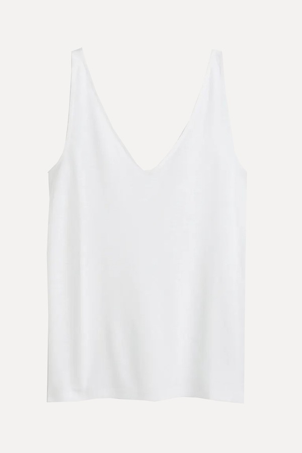 A crisp white shirt goes with everything but this one has a more interesting silhouette. With padded shoulders and extra-long sleeves, it looks great with cargos and a clutch bag – it’s all about nailing the balance between smart and cool.