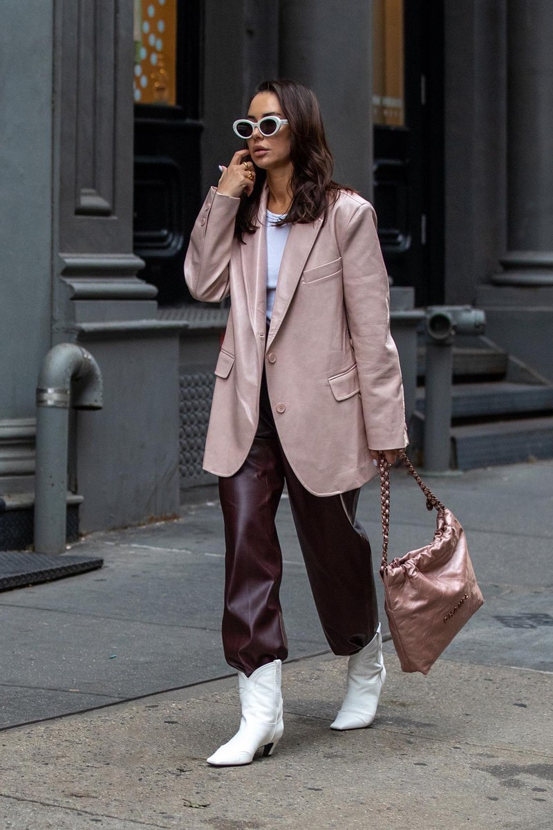 I typically opt for an oversized fit in my tailoring, with slimmer-leg trousers to keep the balance. Add some clogs and a big tote for a reliable on-the-go combo. To take it from day to night, just swap in some killer heels.