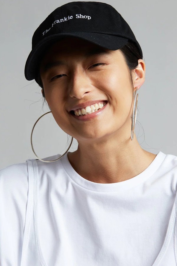 This outfit blends two of my favourite things: neutral tones and The Frankie Shop. An oversized blazer, baggy jeans and a white padded shoulder tee are so easy to style. A baseball cap, a belt with gold accents and a minimalist bag complete the look.