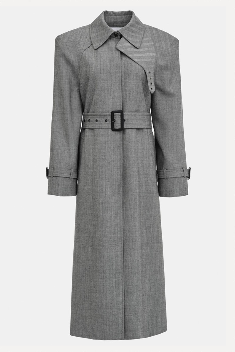 Over time, I’ve moved away from traditional trenches and towards coats with a similar weight but with a slightly cooler edge. This high-neck, belted number is the perfect mid-season piece. The shoulder pads make it feel super elevated.
