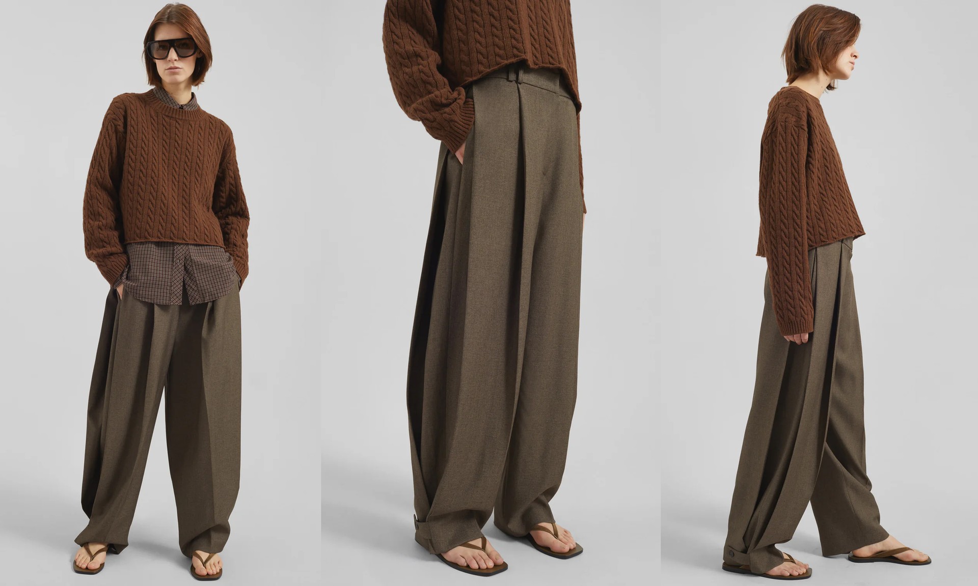 Trousers are an autumn must-have and I’m obsessed with this fabric. Creating some shape is important, so the look isn’t too oversized, and the ankle cinch on these makes your footwear choice much easier. Wear them with something minimal and fitted on top to balance everything out.