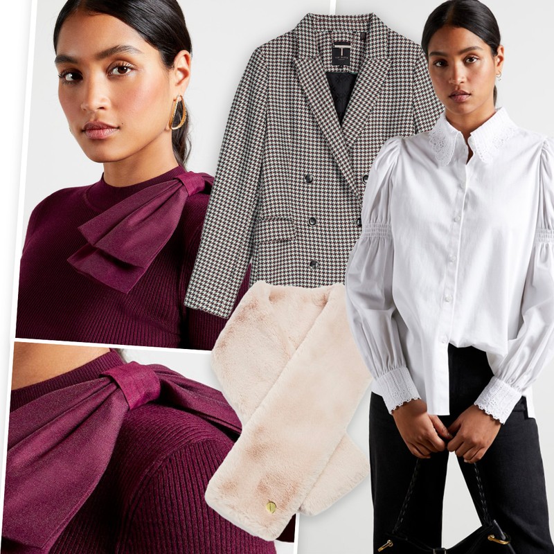 Bow-adorned knits, gold buttoned bouclé jackets, puff-sleeve organza tops… Ted Baker’s latest collection is full of signature flare. Put a glamorous spin on your at-home look with smart leather and pretty tops or layer up in classic coats. Here are the hero pieces that have caught our eye.