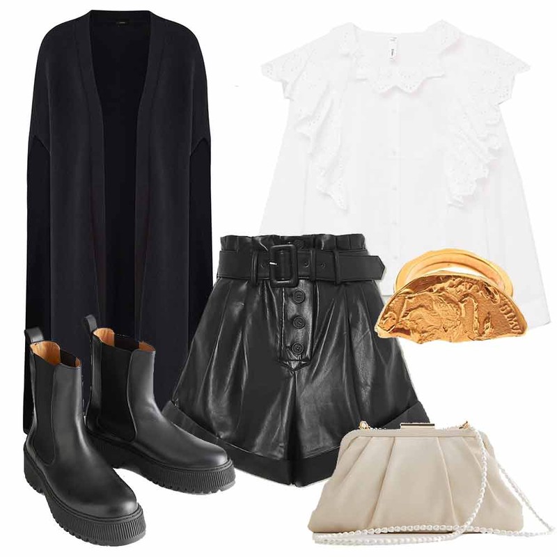 CC: I love this autumnal twist on shorts – chunky boots takes the bare leg look right into the new season, while a dramatic long cape will stop you feeling too exposed.