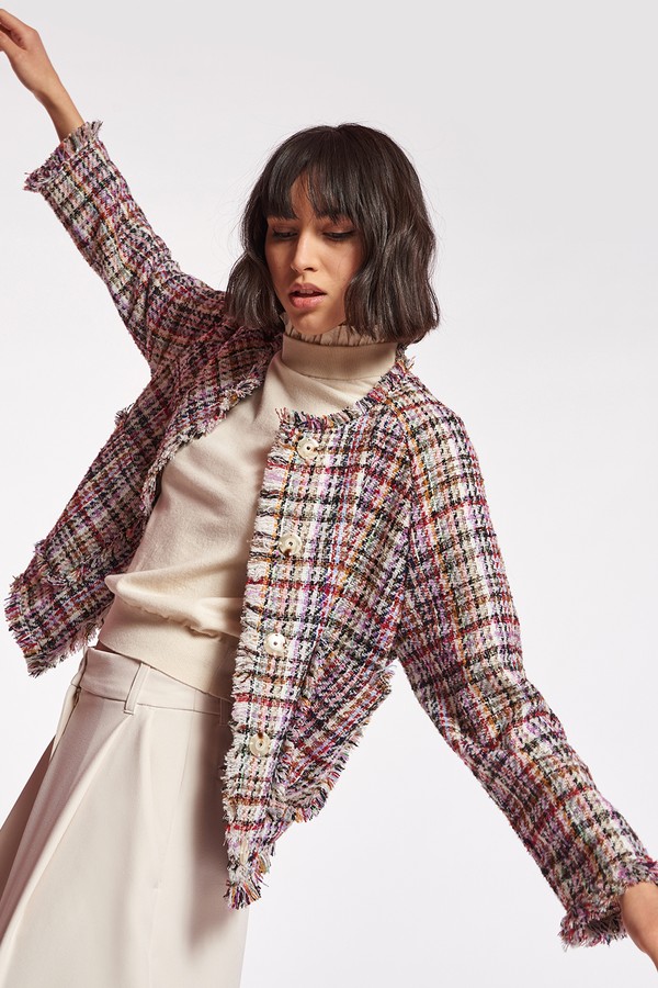 Netti’s look goes to show there’s no such thing as too much pink. For a bit of interest, go with cropped, flared jeans and statement pearl accessories.
