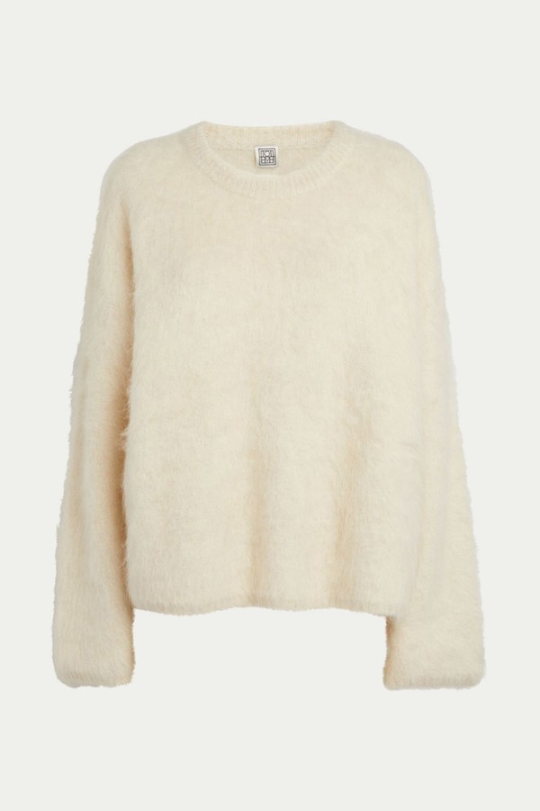 For an effortless look, jeans are always a winner – just remember to go for a slouchier fit that can tuck into a pair of cream snow boots. Fuzzy is in, so go all out with a warm jumper and a Loewe scarf.