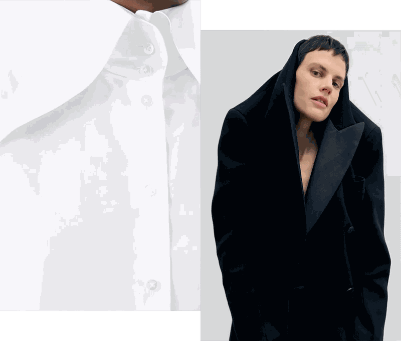 Anything with a large collar instantly gets my attention – especially on shirts and tailoring. I let the collar do the talking by buttoning it all the way up and adding a vintage brooch for a more elevated look.