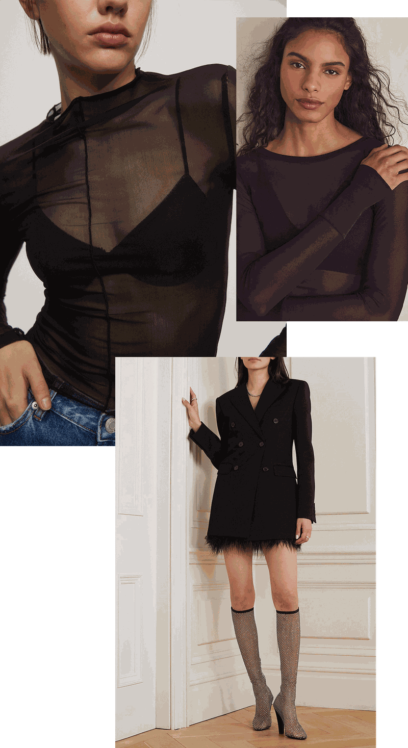 This season, it’s all about that second-skin look and sheer fabrics. A tulle top under a chunky sweater and blazer or a pair of sheer printed leggings peeping through a skirt are my favourite ways to wear the look.
