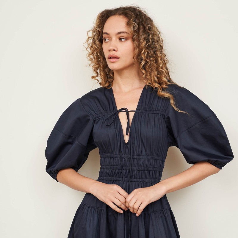 La Ligne's Phillipa dress ticks all the boxes - the elastic waist gives shape, the exaggerated sleeves add femininity. Plus, it's 100% cotton which means it's machine washable - it really doesn't get more more effortless than this.