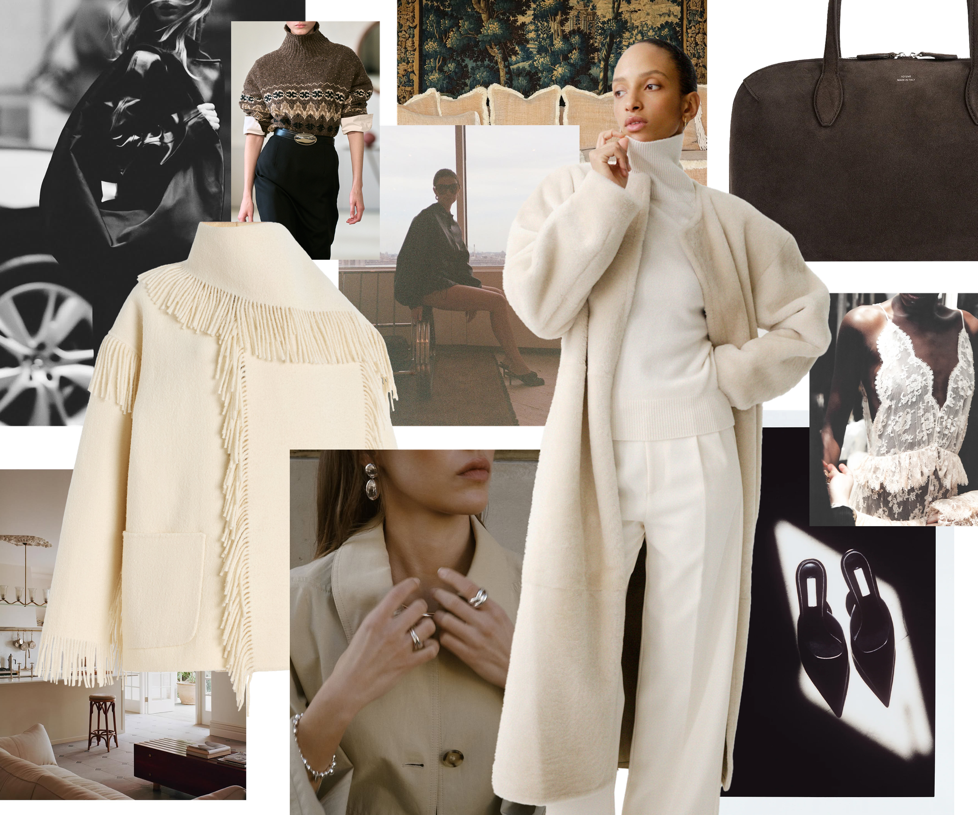 This is my favourite time of year, and I find I’m always drawn to similar textures like fringing and suede. This TOTEME jacket is high on my wish list. Lace isn’t going anywhere either, as we saw at Chloé, and I love how this feminine detail can be taken through the seasons. I also saved this Altuzarra look when I first saw it: a fair isle knit is always an essential. I also have my eye on St. Agni right now. It’s an Australian brand known for its simple silhouettes and chic accessories. I am also feeling very inspired by the Bessette curations online.