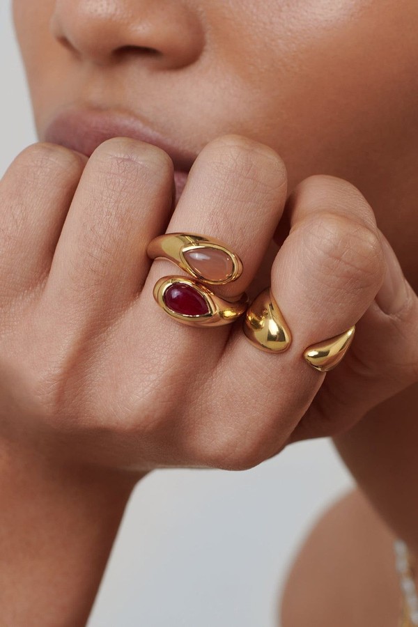 “I’ve always mixed metals, especially as a lot of my jewellery tends to be more sentimental. APM Monaco has long been my go-to for affordable silver that mimics high-end luxury with impressive longevity. The simplicity and elegance of Rani & Co.’s pieces never disappoint, and this intricate wave ring is one of my favourite stackable pieces. When my outfit errs on the minimalistic side, I tend to go bolder with a chunky cuff or some heavy gold earrings.”