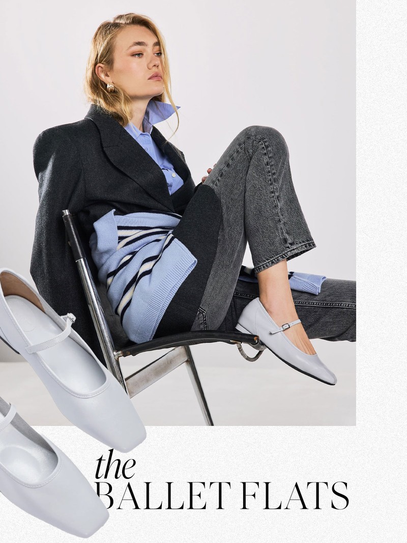 "Ballet flats are the ultimate smart-casual staple – polished enough for the office but cool enough to wear with denim. I love the idea of this pale blue pair with jeans, a white shirt and a preppy navy jumper thrown over the shoulders."