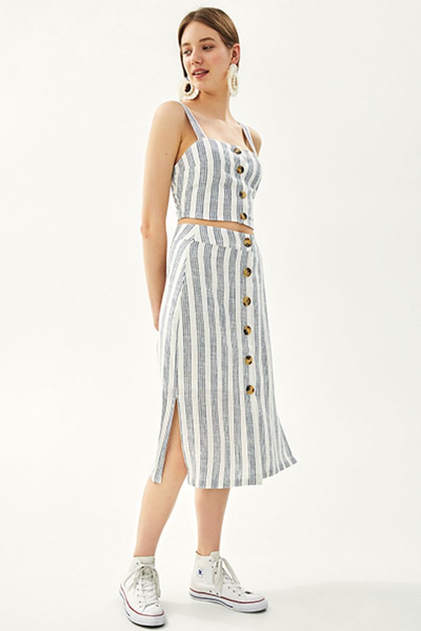 Micro trend alert: Buttons are having a real moment right now, and cool girls are turning to midi skirts adorned with the detail for a seasonal update. Team structured styles with chunky knits and block heels for a modern work edit or invest in floaty linen designs – ideal with white tees or crochet tops for a trend-lead holiday look. There’s a Roksanda offering currently wooing us but if the budget doesn’t stretch, both Zara and Uterque are delivering on doppelganger styles.