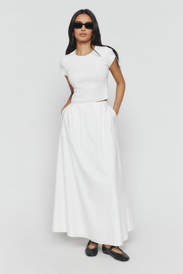 We’re seeing full white skirts all over Instagram right now – and we have brand like Prada and The Row to thank. One of the most wearable spring/summer trends, pair it with ballet flats and a knit now or a vest and sandals in warmer weather. Here are some of our favourites…