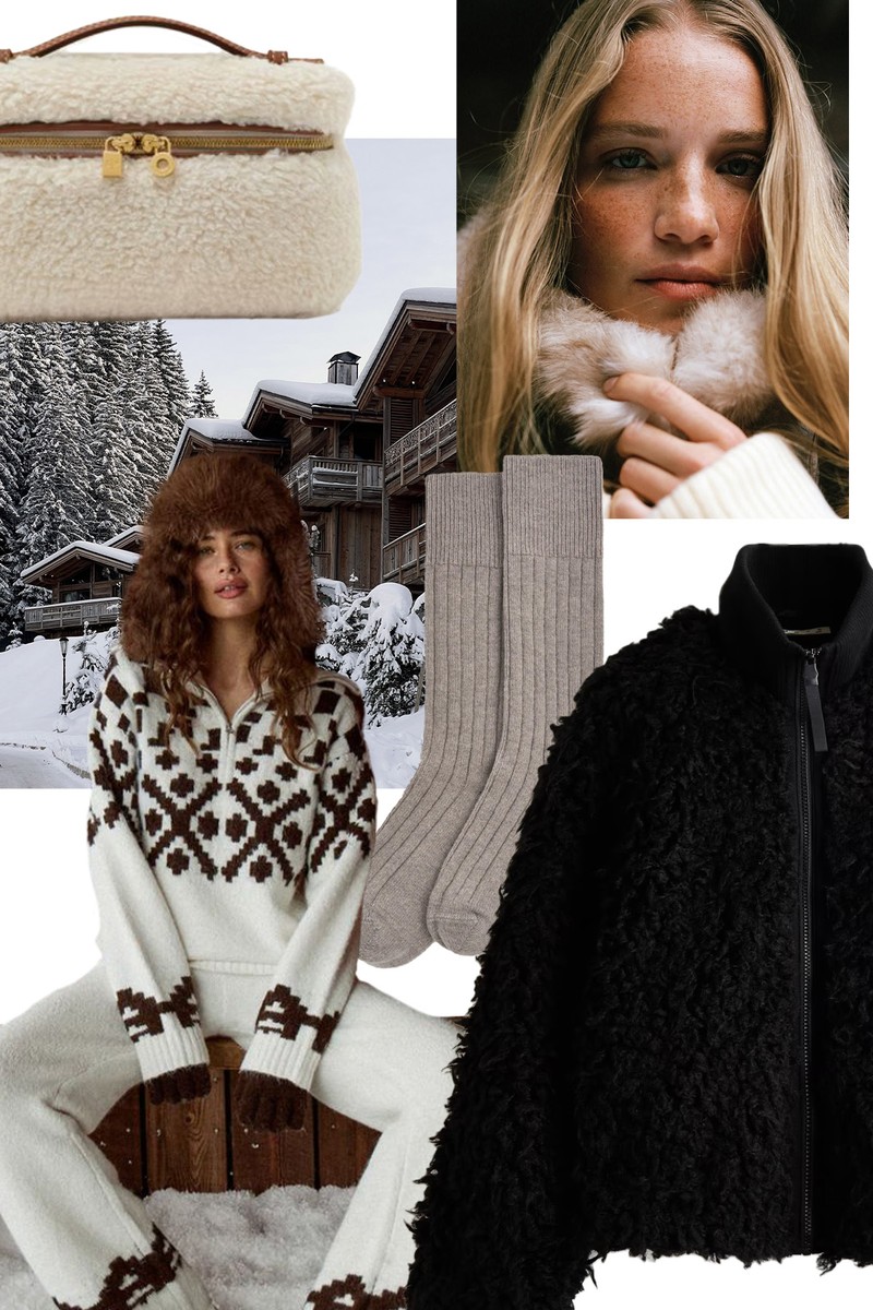 Après-ski style is all about comfort and polish – PLUSH ACCESSORIES, like the mittens Didem wears here, look particularly good with RICH, TACTILE LAYERS.