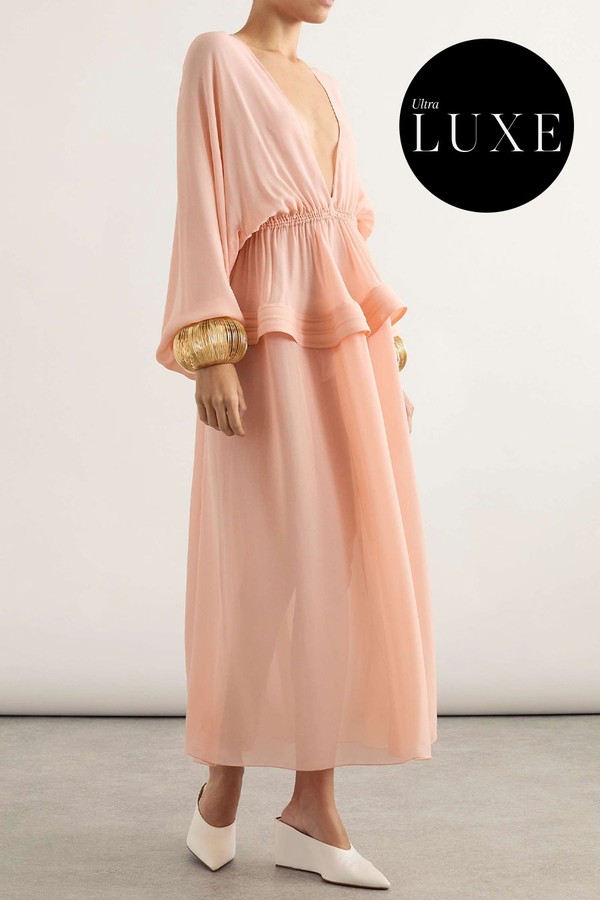 Soft, flattering and easy to wear, peach is the shade to try this season. Inspired by the romantic tones of Chloé’s SS25 collection, it’s cropping up everywhere – from blazers to sunnies and even a fresh take on Alaïa’s fishnet ballet pumps. These are our favourite pieces…