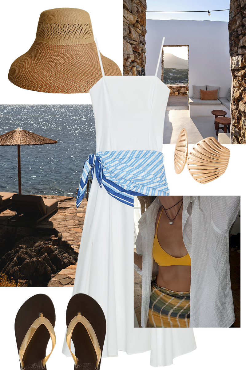Greek island style is all about effortless shapes and sun-washed colours – and from sculptural jewellery to raffia accessories and crochet separates, we’ve rounded up the pieces that will help you tap into this dreamy summer aesthetic…