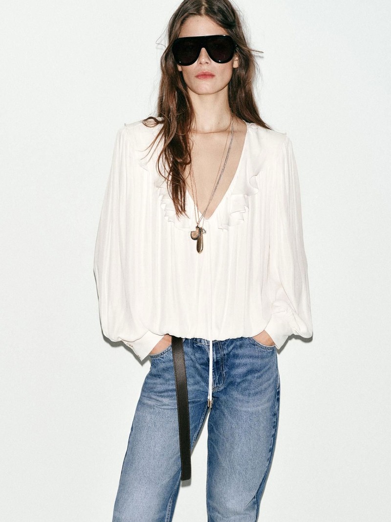 Satin Blouse With Ruffles & Shoulder Pads, £27.99 | Zara