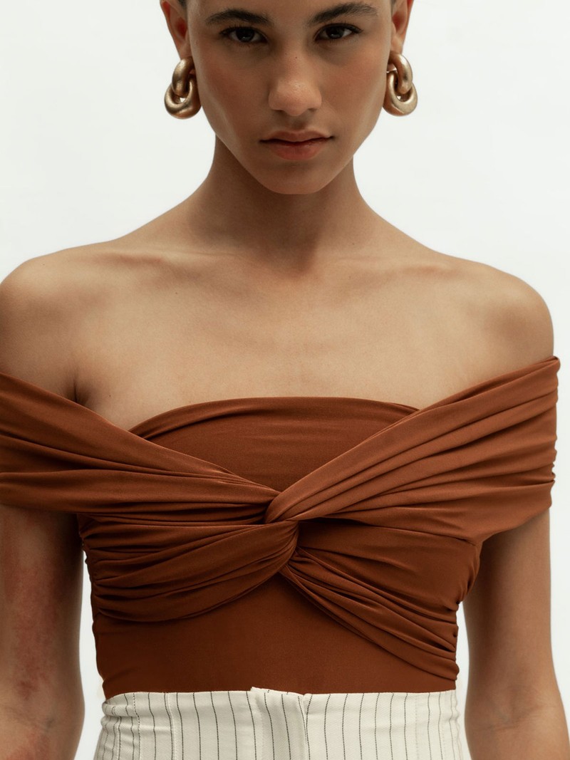 I love a bodysuit at night and this silhouette is so beautiful. All you need is big gold earrings, a little body oil on the collarbone, a bold eye and you’re good to go.