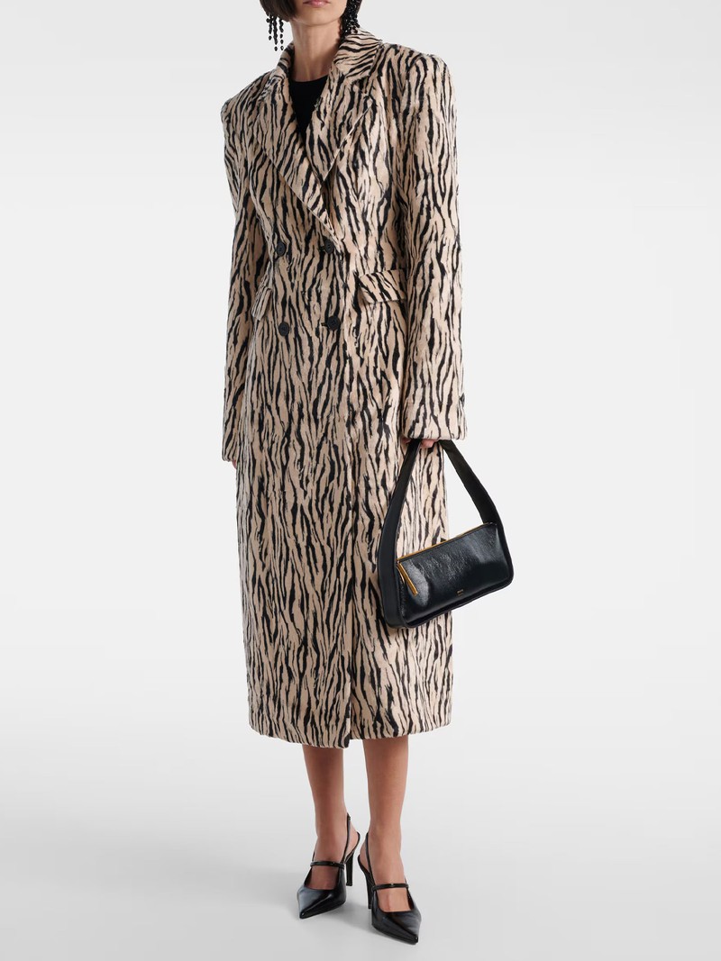 Printed Double-Breasted Faux Fur Coat