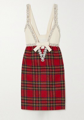 Embellished Wool And Silk Checked Wool Mini Dress, £3650 | Miu Miu