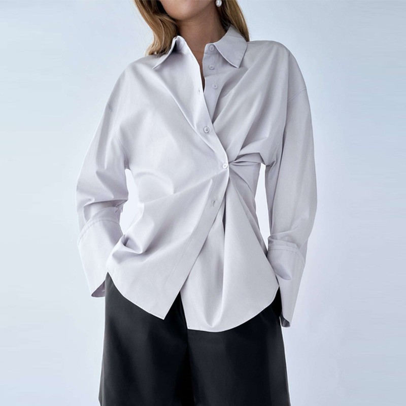How many shirts is too many shirts? This is a great one to add to your work wardrobe thanks to its cool crossover buttons – you can button it the ‘classic’ way too, which essentially gives you two shirts for the price of one. Wear it with straight leather trousers or black slacks.