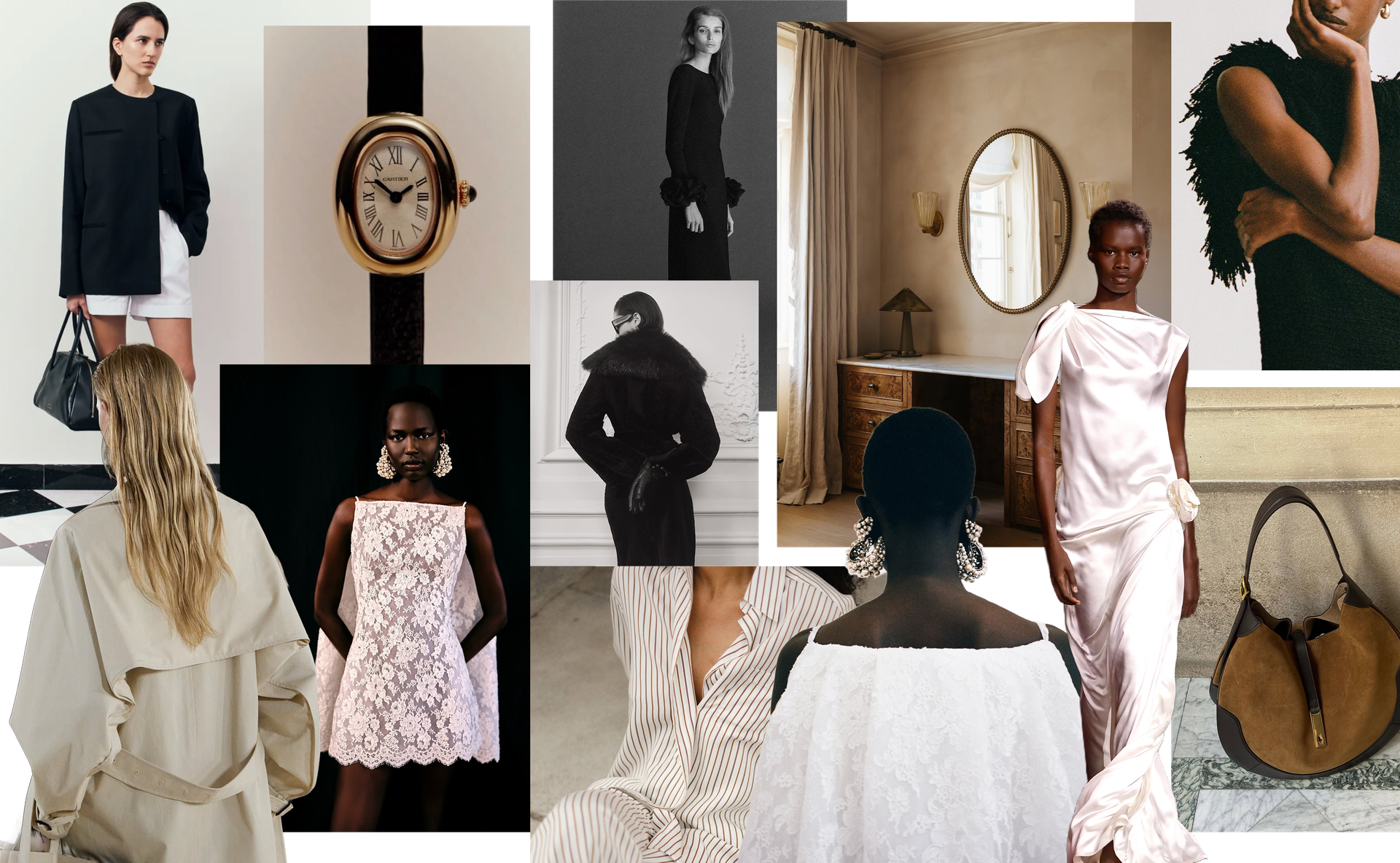 My moodboards always include timeless pieces that feel true to my style: a TOTEME trench, something stripey by Dagmar and a classic Cartier watch. I’ve also included two trends I've enjoyed recently – fringing details by Liberowe and a faux-fur collared coat by Nour Hammour. I love how these details can add interest to even the simplest of looks. I’ve also added a nod to Ralph Lauren with this suede bag – the heritage brand is my current obsession – and something bridal. I love the chic cape details at Givenchy and the elegance of this Chanel look – it caught my eye on the runway and went straight onto my 2026 moodboard.