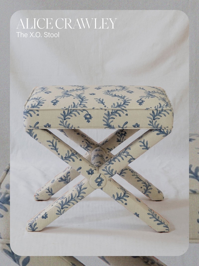 Meet the X.O. Stool by interior designer Alice Crawley, a design-led piece named for its distinctive criss-cross base and signature central button detailing. Equal parts form and function, this is furniture designed to move where you need it. Whether styled at a dressing table, slipped neatly beneath a console or brought out as extra seating when entertaining, its versatility is what makes it indispensable. For a truly bespoke finish, choose from a refined edit of Alice’s favourite fabrics and textures, alongside a considered palette of coloured linens from The Cloth Shop, allowing you to create a piece that feels entirely your own.